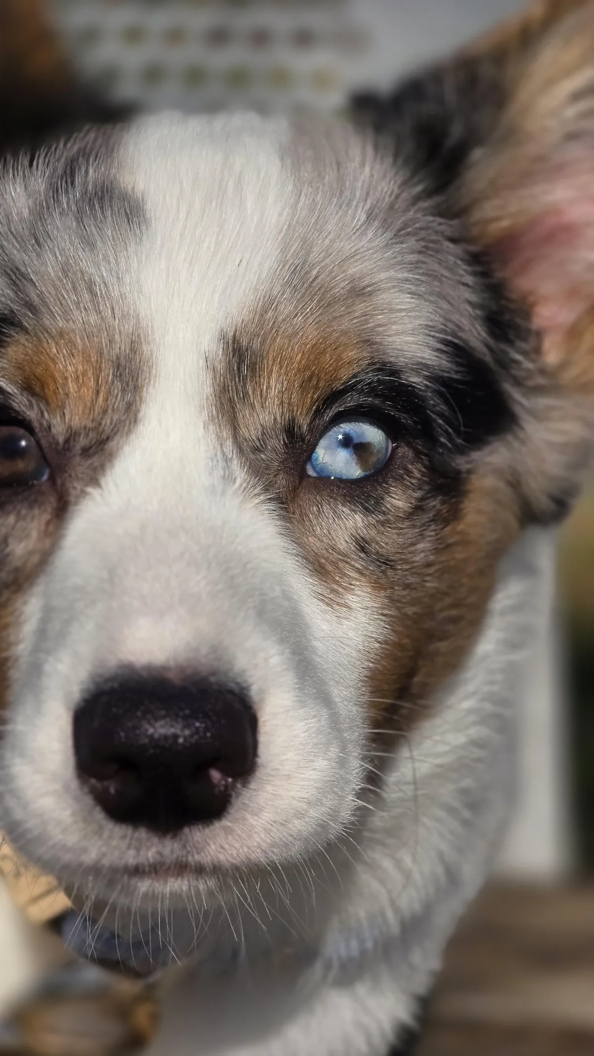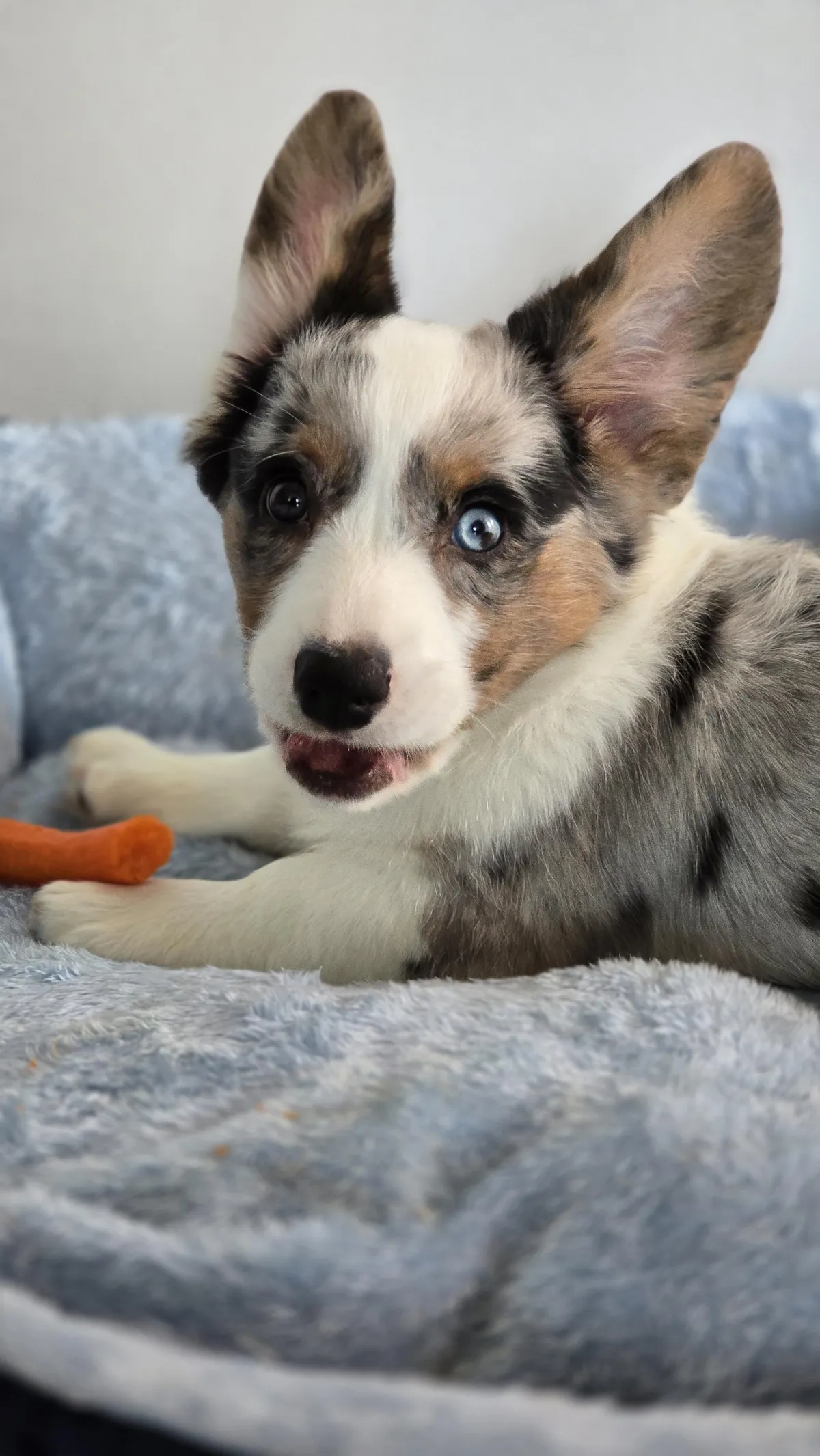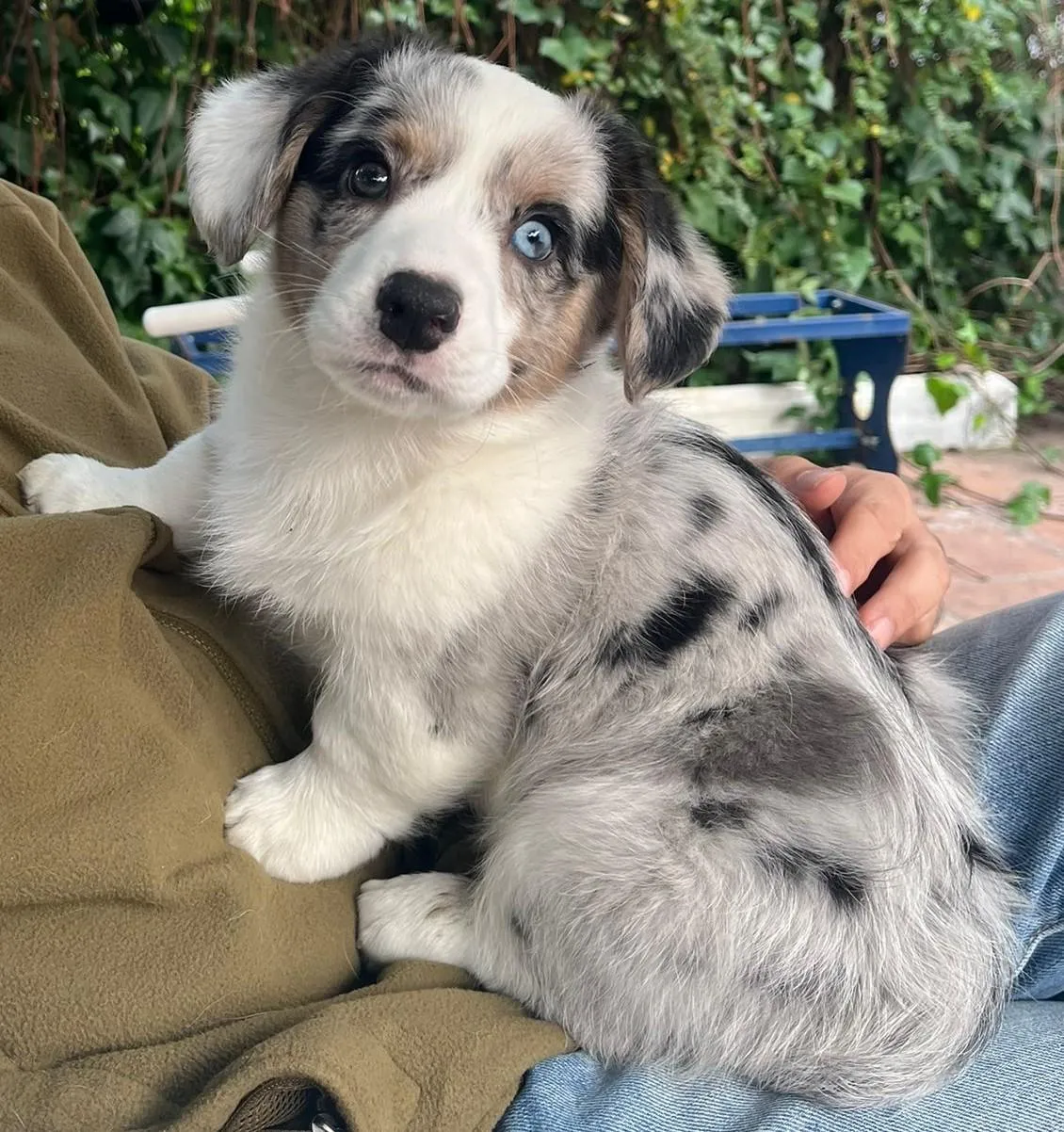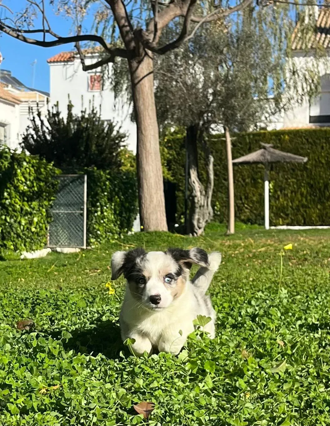 I live in Valencia since January 2025I'm Cardigan Welsh Corgi, Blue Merle. My left eye is blue.